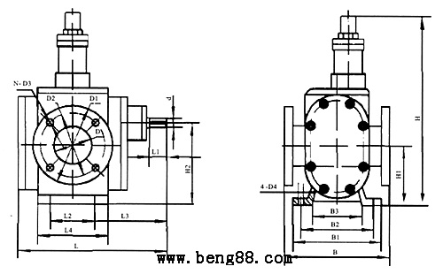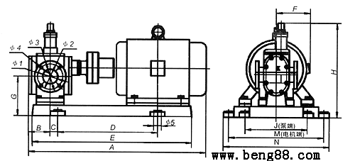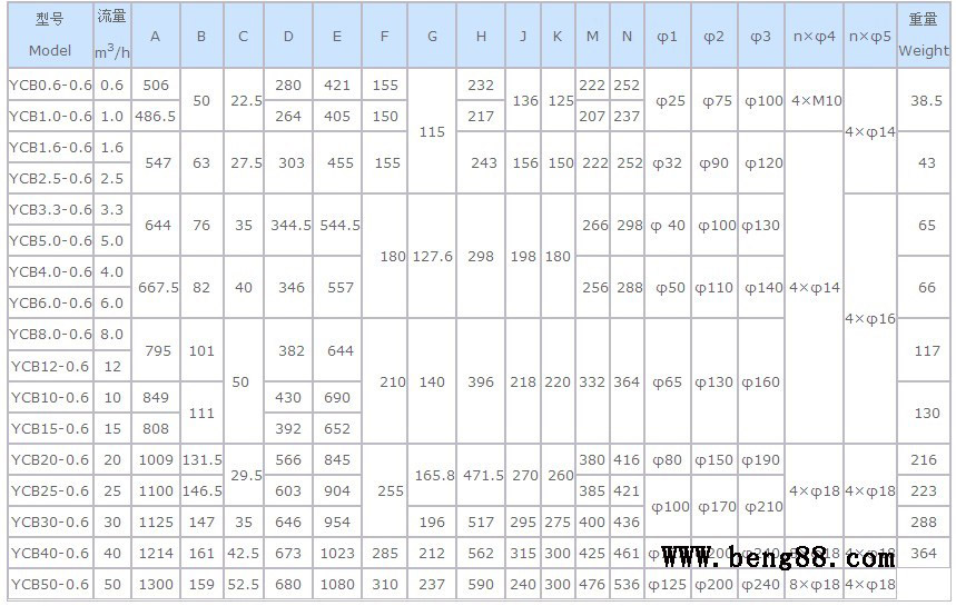 YCB型齒輪泵外形及安裝尺寸的性能參數(shù),是在介質粘度4×10-3m2/s(40cSt)時確定的。YCB型齒輪泵外形及安裝尺寸性能參數(shù)表中給出的參數(shù)值適用于介質粘度1×10-5~8×10-5m2/s(10~80cSt)范圍內,超出這個范圍則根據(jù)用戶提出的性能參數(shù)要求另行確定。